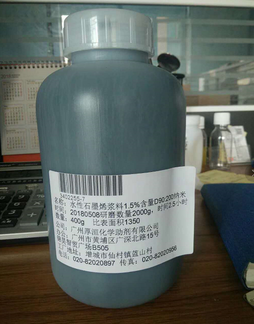 今天帶給大家的客戶實例見證是:為客戶研磨比表面積為1350的水性石墨烯漿料1.5%固含,研磨2.5小時粒徑D90:200納米!