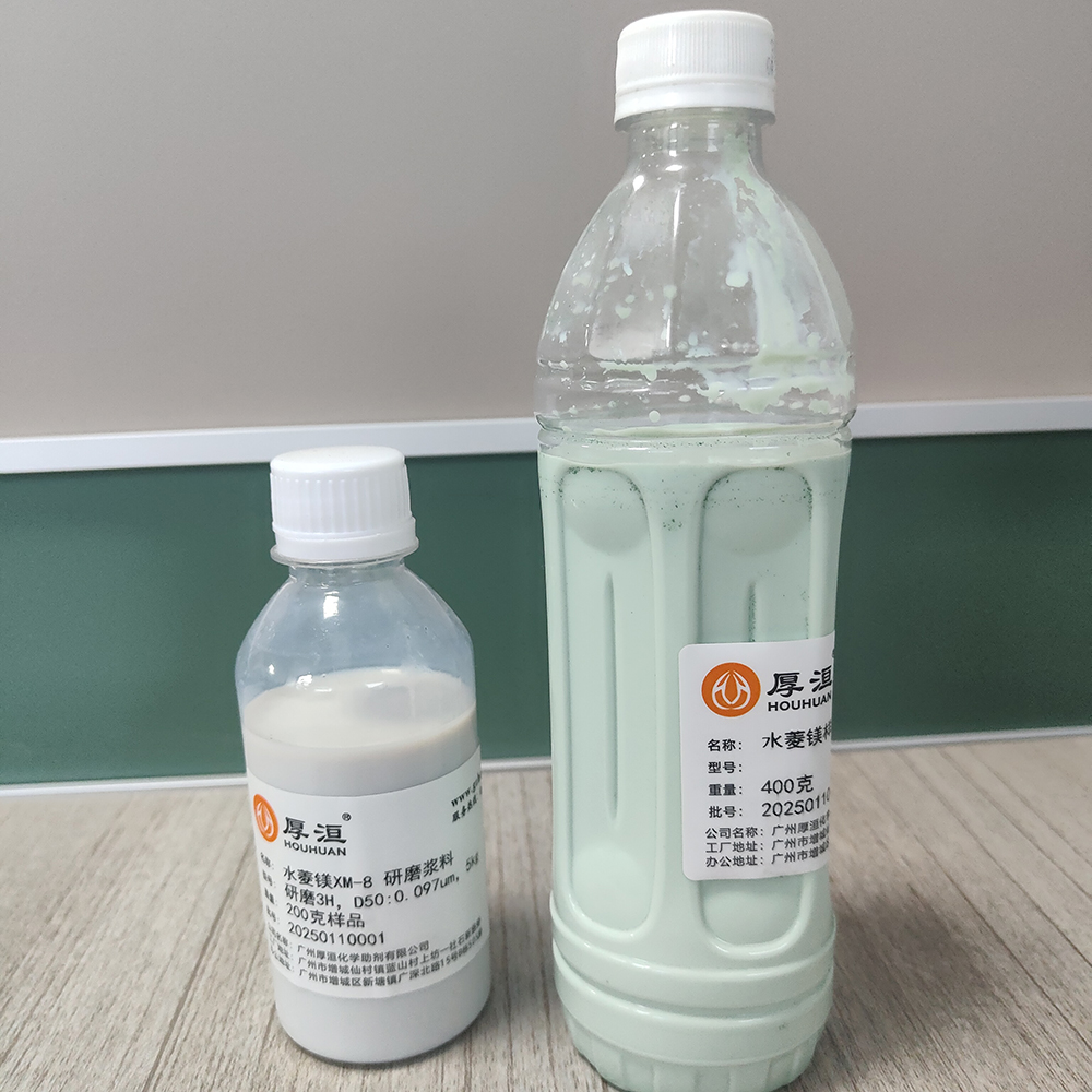 以上圖片為實(shí)拍圖,是用HH2820W水性分散劑做的無(wú)機(jī)粉體材料水菱鎂粉體漿料,做的40%固含量,循環(huán)研磨3小時(shí),D90在0.2um(實(shí)際粒徑可以控制0.1微米以內(nèi))。